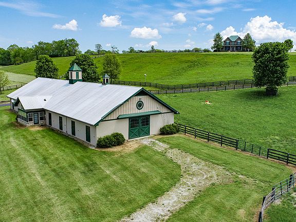 🐎Welcome to 501 College Road! The gated entrance of this 64+/- acres farm leads you up the curved blacktop driveway. First, you will pass the gorgeous 16 stall horse barn with a kitchen and office. After the barn is a newly built 48 x 64 ft shop with oversized garage doors and a half bathroom. Past the shop is a custom built brick home with 4 bedrooms and 3 1/2 bathrooms. The house has a 2 story stone fire place in the living room. There are top notch finishes including Brazilian cherry hardwood floors, travertine tile, a gourmet kitchen with Electrolux appliances, a spacious first floor master suite with 2 walk-in closets and jacuzzi tub, crown molding throughout, and geothermal heating and cooling for energy efficiency. There are 3 run in sheds on the farm and 4 plank fence throughout. This farm is located just 40 minutes from the Kentucky Horse Park and 46 minutes from the Bluegrass Airport.
