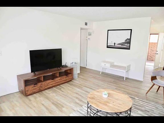 Nice 2 bedroom with large rooms and 2 baths. Covered patio and parking. Washer and dryer included but is shared. Furniture can be stay or be removed. Owner pays water. Tenant will pay trash, electric and gas bills.