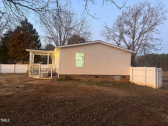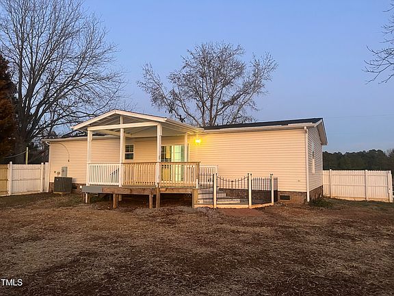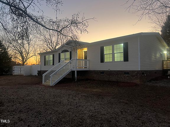 3 Bedroom/2 Bath Double wide on brick foundation and just minutes to the 40/42 area. Move in Ready! Plenty of Space! Updates include newly painted interior, new flooring (LVT and Carpet), new light fixtures, and SS Appliances. Access via deeded easement on Cornwallis Rd. and Adjacent to I-40. Beautiful backyard views of rolling pasture. Nice detached building perfect for Man/She Cave or storage.
