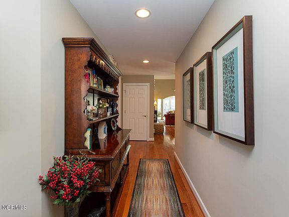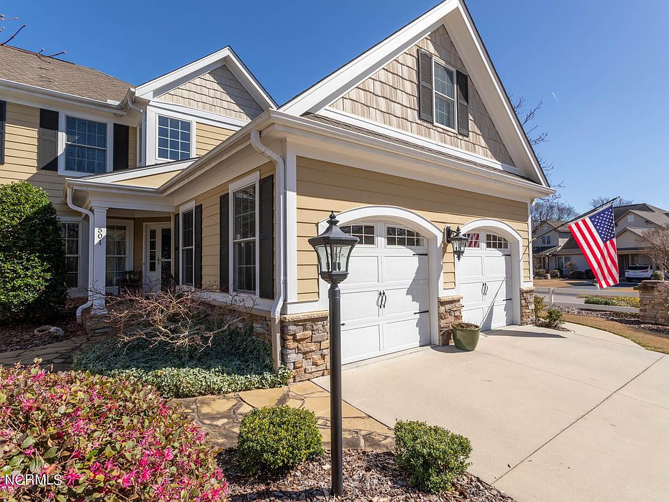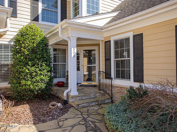 Beautiful golf front home in Longleaf Country Club offers luxurious living in a prime location convenient to shopping and dining in downtown Southern Pines as well as the Village of Pinehurst. A stately stone front porch welcomes you into this nicely designed home with a wonderful open floorplan with lots of natural light. It has hardwood floors throughout the main living areas. A soaring two-story vaulted ceiling spans a spacious living and dining room. The living room has a lovely natural gas fireplace. A bright Carolina room has a columned, arched entry from the living room, window walls and doors to a back deck, with panoramic golf views that is perfect for entertaining or relaxing. The kitchen features white wood cabinetry with crown molding, granite counter, tile backsplash, stainless steel appliances and a breakfast nook. The main level primary suite has a deep tray ceiling, wall of windows overlooking the golf course, lots of closet space and en-suite bath with double sink vanity and luxurious walk-in tiled shower. The main level also has an additional bedroom with its own access to a full bath. The upper level has a nice open loft, another bedroom with access to a full bath, hallway with three closets accessing an unfinished storage room, and bonus room/flex space that could be an office/den/additional bedroom with a walk-in closet that accesses an unfinished attic storage area. Situated off iconic Midland Road, this could be your retreat in the heart of this world-renowned golf mecca with some of the finest shopping and dining nearby. ** NEW HVAC May 2024 **