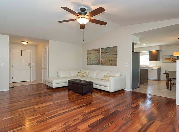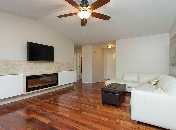 Not a drive-by, this home is larger than it appears, and the interior looks like an interior designer just finished work on it! Brazilian cherry floor welcome guests at the front door and run through the living room, dining room, and office area. The great room boasts a cathedral ceiling with a decorative fireplace with designer stonework and a wall-mount for a flat panel television with in-wall cables. The versatile floor plan has the living, cooking, dining, and study or additional living space all open, perfect for entertaining. The whole house features high-quality Andersen Windows with upscale 2" blinds. Other highlights include recent high-efficiency furnace, new refrigerator, range, & hood. The backyard features a new garden shed. See HD photo gallery and 3D photo tour!