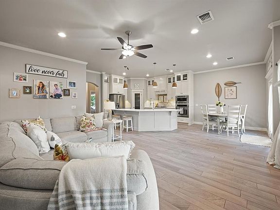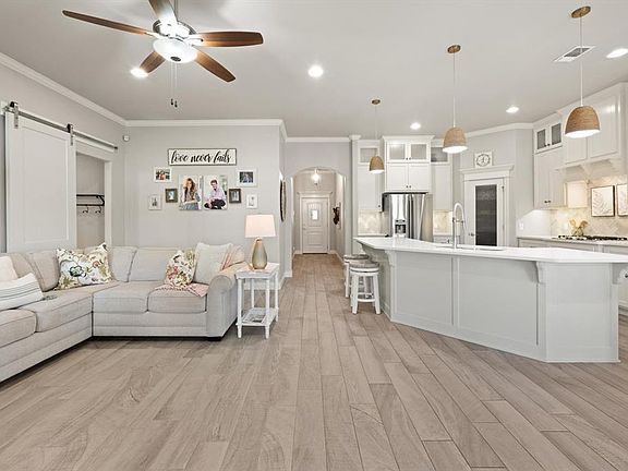 Welcome to this immaculate 4 bedroom home, offering versatility with an optional study. This beauty also features 2 full baths and a spacious 3 car garage, complete with a storm shelter. The open living area is a highlight with its stacked stone fireplace, wood look tile floors, and an abundance of natural light streaming through the raised ceiling. The kitchen showcases a large quartz island, stainless steel appliances, and a spacious pantry for all your storage needs. The primary suite is a private retreat! You'll love the luxurious bathroom with granite countertops, dual sink vanities, a walk-in shower, a spa tub, and two generous closets. The secondary bedrooms are situated on the other side of the home, ensuring privacy and utility. Additional amenities include a tankless hot water system and abundant storage throughout. Enjoy quiet evenings outside as you sit under the covered patio by the outdoor fireplace. Kelly Lakes is a fantastic neighborhood with a pool, clubhouse and sand volleyball court. Plus, walk to school! A sidewalk leading to Cross Timbers Elementary is literally down the street! Conveniently located near shopping, schools, and restaurants, this home combines luxury, comfort, and practicality in one perfect package. Don’t miss the opportunity to make it yours!