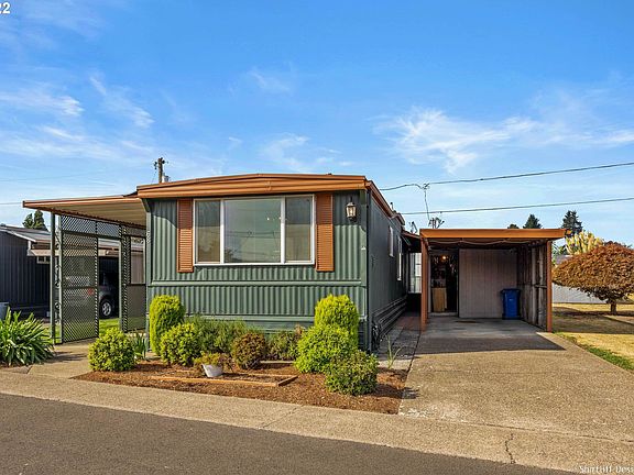 Come view this beautiful Fleetwood before it's gone! Quiet 55+ Community. Upgrades include new fixtures, water heater, fresh ext paint, electrical panel, heat pump, vinyl windows, LVP flooring, portable D/W + more! Living room wired for speakers & enclosed deck w/ sliders for outdoor entertaining or small pets. Well maintained yard & garden beds (park owned). Centrally located to shopping, hospitals, and the Willamette River. Selling as-is. Space rent is $585/month. Must be approved by the park.