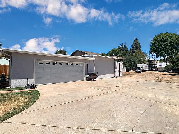 SINGLE STORY 3 BEDROOM 2 BATH 1600 SF HOME ON HUGH ALMOST 1/2 ACRE ALL FLAT AND USABLE LOT WITH 4 CAR GARAGE SHOP AND STORAGE CONTAINER, DRIVE IN BACK YARD ACCESS POSSIBLE ROOM FOR ADU OR GRANNY FLAT HARD WOOD FLOORS ENERGY EFFICIENT WINDOWS CENTRAL AIR AND HEAT JUST PAINTER OUTSIDE. LARGE FAMILY ROOM WITH ROCK FIREPLACE ENCLOSED PATIO ROOM WITH BBQ, ROOM FOR ALL KIDS ANIMALS RV,S TRUCKS AND MORE. WORKSHOP HAS 50 AMP ELECTRIC YARD HAS MATURE FRUIT TREES AND SPRINKLERS. WALK TO SCHOOLS AND SHOPPING