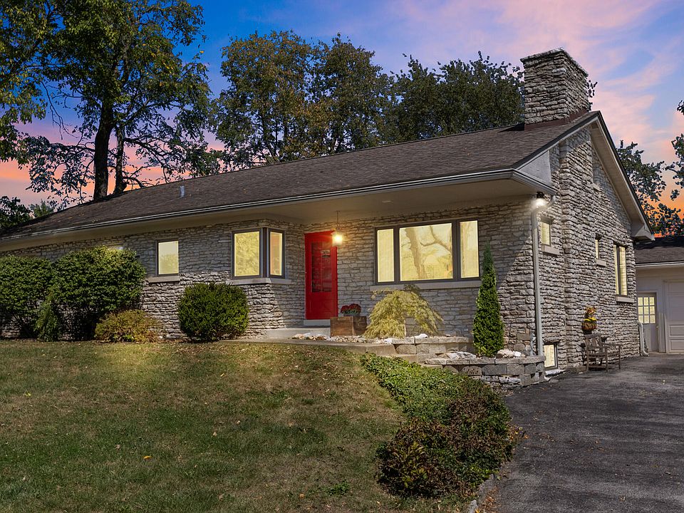 Wonderful fieldstone ranch conveniently located near 1-75/64, New Circle Road, and minutes from downtown. The large living spaces include gas logs in the handsome stone fireplace flanked by built ins, opening to large sunroom and dining areas. Neutral kitchen with large pantry storage. New Anderson windows throughout, expansive fenced yard, and spacious basement with fireplace. The large floored attic with an abundance of storage offers possible expansion. Lovingly landscaped yard. Large drive-through garage with 2 entrances & back driveway on large corner lot. Great property!