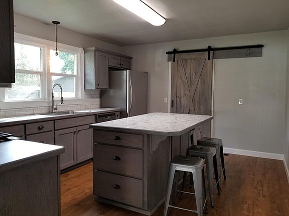 Total remodel, new windows, new cabinets, large kitchen with big island with 6 seating ,all stainless steel appliances, gas stove. All bedrooms have new ceiling fan, all new light fixtures, good storage throughout. Originally wood floor, no carpet. Convenient to down town ,shop and elementary school and university, huge fenced yard.