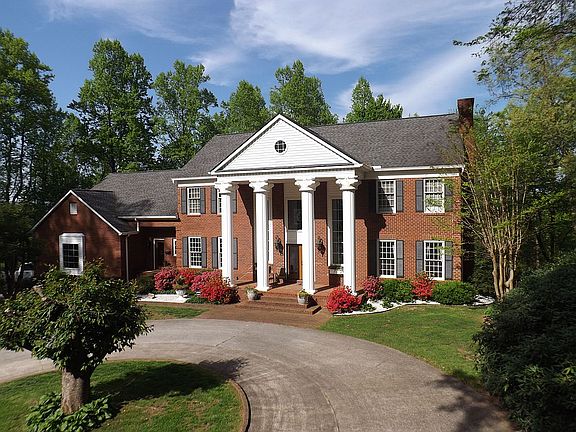 PRICE REDUCED!!! COUNTRY LIVING IN THE HEART OF DOWNTOWN This gorgeous, 5,000 sq. foot, brick Georgian Revival home sporting four wood burning fireplaces is a one of a kind! It is located on 3.78 park-like acres in the city limits, overlooking downtown Marion. It is within walking distance to Main Street and all amenities this small town offers, with easy access to I-40 and only 30 minutes to Asheville or Hickory! Access this one of a kind, beautifully landscaped and easily maintained property across a paved, wooded, private street and a concrete circular drive to the front entrance of the home. The driveway extends to a side entry of an attached, extra tall, 628 square foot garage. The property also boasts a nicely fenced 120’ X 20’ back yard lot, perfect for a garden spot, play yard for children or a secure lot for a pet. Upon entering this grand 17 room home via the impressive two-story foyer you are greeted by two beautifully curved oak stairways, solid oak dentil moldings and interior doors. The staircases lead upstairs to a beautifully decorated Master Suite, three additional bedrooms and two additional full baths, all recently updated. The grand master suite has cathedral ceilings, a breathtaking marble fireplace with antique surround and mantel banked on both sides by floor to ceiling windows, and two spacious closets. The four piece master bath has double sinks with tons of oak cabinetry, separate water closet, jetted garden tub, separate shower, a large walk in closet and two linen closets. The spacious, light filled, downstairs hosts 10 foot ceilings throughout, a large elegant family room with two beautiful Corinthian columns, floor to ceiling brick fireplace with gas insert and two sets of French doors leading out to a massive 900 sq. foot deck surrounding the back of the house. This deck provides sweeping views to the North overlooking downtown Marion with lots of sunshine and shade for relaxation. Off the family room is a formal living room also with a floor to ceiling brick fireplace and leads to a study with built in solid oak cabinetry with access to the deck. Also located on the first floor is a large, beautiful, eat-in kitchen any cook will love. It has a walk-in pantry, custom oak cabinetry, exquisite designer grade granite countertops, huge center island with eating space and a Jenn-Air electric cooktop. A Bosch dishwasher and a newer four door Samsung refrigerator and built-in Bosch double ovens completes this dream kitchen. A six-foot slider provides convenient access to the deck for grilling. Located off each end of the kitchen are two beautiful half baths, both recently updated, a conveniently located laundry room with private entrance and two large closets. Also off the kitchen is a large, beautifully decorated room perfect for a fifth bedroom or playroom and the access to the large garage. Just off the foyer and adjoining he kitchen, is a beautiful formal dining room, perfect for those memorable, family holiday meals. Some additional features this home offers are a super private setting while situated in downtown, central vacuum system, central heat and air on both floors, and solid oak cabinetry and wood trim throughout the entire home. Also included is a 2900 square foot partially finished walkout basement with wormy maple cabinets and stainless sink as well as a fireplace and storage room. You will enjoy the separate large work shop and tool room accessible from the outside. The whole house is filled with natural light from the many large windows throughout. No expense was spared in the construction of this impressive home. A must see (by appointment only)!