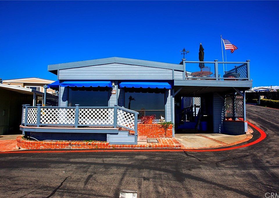 Welcome to Beach Life!! This remodeled manufactured home, corner unit, offers a stunning ocean view, 2 bedrooms and 2 full bathrooms and an open floor plan and new engineered flooring throughout the a nice front deck and plenty of parking under 2 carports. The kitchen has an Island and nice wood cabinets. In the second bath you'll find the location for your new washer/dryer. You will also enjoy a new dishwasher, refrigerator and microwave. An upper deck that offers spectacular view of the Pacific Ocean. Recently the owner has had a complete plumbing re-pipe including supply lines & drain lines while adding a new water filtration system. Two carports that easily accommodate a truck or SUV plus storage units. All termite damage has recently been replaced or repaired and a monthly pest control service is in place. Seller is willing to leave the unit partially furnished. Included with your space rent you get a clubhouse with a library, salt water pool that's heated year-round , BBQ, Private beach. This a senior community, and very well maintained.