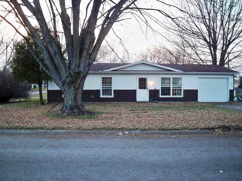 Home features 3 bedrooms, 1 bathroom, eat-in kitchen, and 1 car garage on a corner lot.