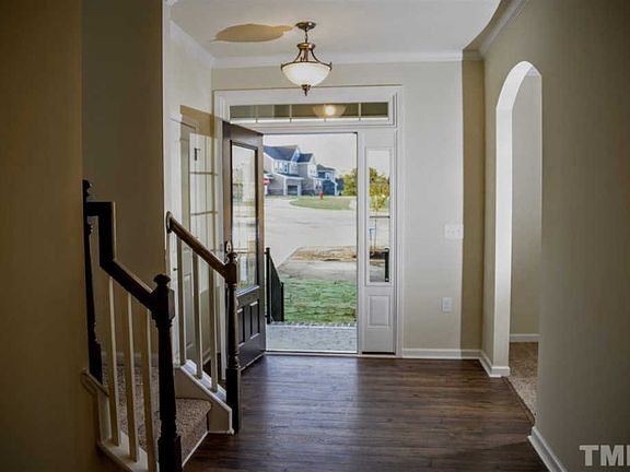 This Remington floor plan has space for everyone, including 5 bedrooms, office downstairs and formal dining room. Gas range in open kitchen with SS appliances and granite countertops. Large deck overlooks back yard and private woods. 1/2 acre culdesac lot! Master suite includes his and her sinks, garden tub, and luxury tile. Third floor offers bonus room AND 5th bedroom with FULL bath. Be in Raleigh, Wake Forest, or Knightdale in just minutes! New pool in community!