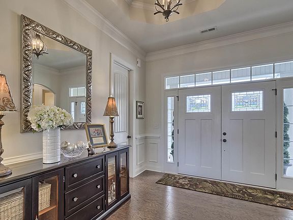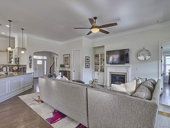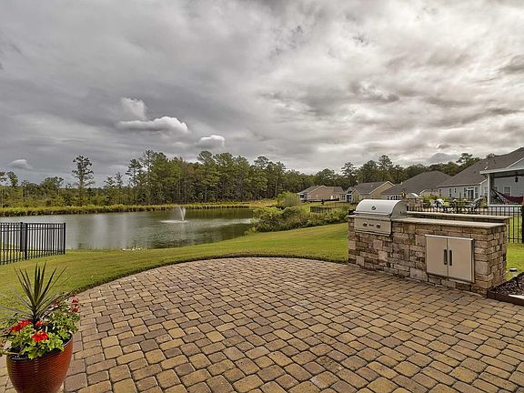 This house sits on a large corner lot in a gated community with resort-style amenities. As you step through the double door entrance of this beautiful 5br/3.5ba house, you immediately notice the casual elegance this home offers as 11ft ceilings, bordered by 8ft panel doors and open archways draw you in. The main level features a very open floor plan with 5" hardwood floors throughout the living area, and built-in cabinetry accents the fireplace. The gourmet eat-in kitchen has an island and is equipped with stainless steel appliances including double ovens for large family gatherings. Granite counter tops and tile backsplash accent the french country cabinets. There is also a large formal dining area, office/sun room and laundry room. Enjoy beautiful views of the pond and fountain from the master suite, great room and sun room or from the covered back porch with built-in grill. The master suite has coffered ceiling, bath with double sinks, separate tub and shower and granite counter tops. 2 additional bedrooms and 1.5 baths round out the main level. Upstairs has 2 bedrooms and a full bath.