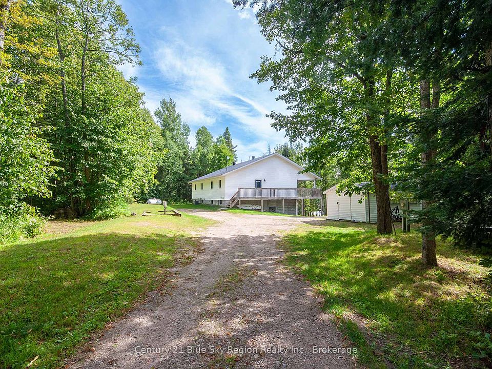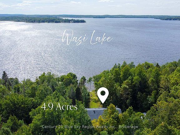 Enjoy peace and quiet from this spacious 3+2 bedroom, 2 bathroom 1,500 sf Wasi Lake waterfront bungalow with full walkout basement. Situated on a beautiful well treed and private nearly 5 acre lot with sandy shore and western exposure for afternoon sun by the lake. The main floor features a large open concept living area overlooking the forest and water, large kitchen, dining/living area with access to the oversized covered lakeside deck with glass rail. 3 bedrooms & 4pc bath with laundry. The lower level has a large rec-room with walkout, as well as room for a seating area next to the wood stove. 2 large bedrooms, utility room and 4pc bath. Forced air propane heating with a/c. The exterior features a large storage shed, ample parking and surrounded by mature maple trees. The shoreline offers over 200 ft of frontage and is firm with a beautiful sandy beach area and firepit. Located only minutes from the 18 hole golf course, ATV, snowmobile trails, area crown land and less than 30 min to North Bay! Adjacent 4.8 acre waterfront available to purchase with home.
