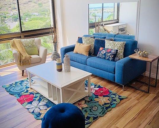 Amazing ocean, marina and mountain views.. Enjoy the luxurious Mauna Luan Hawaiian lifestyle, great unit on the 8th floor recently remodeled (2018). Designer decorated, new flooring, upgraded appliances, kitchen and bathroom. The unit comes with a queen bed in the master bedroom and a sofa-bed that unfolds into a queen bed. Resort like amenities include fitness center, racquetball, swimming pools, hot tubs, BBQ areas, manicured landscaping, recreation facilities and 24 hour security, one cover parking space (additional parking available on street or for rent) Minutes walk to Oahu club, Safeway, Costco, restaurants and more. Monthly rent of $2,450.00 + $2,450.00 security deposit. Rent includes, water, internet, basic cable, and free parking. Unit includes refrigerator/freezer, range/oven, dishwasher, washer/dryer. (The unit is fully furnished) Tenant is required to obtain renters insurance. This is a long term lease property, (3 months, 6 months, 1 year). no pets, non-smoking. 3 months/6 months/ 1 year lease