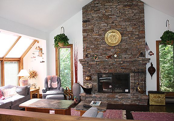 Tucked away at Hawk: Perfectly nestled among the trees, this charming contemporary offers a unique design where the entry-level floor is a wide open great room with the main living area centered by a soaring fieldstone fireplace and greenhouse windows, dining area with sliders to a deck and a kitchen with breakfast bar and sky light. Two lower level living floors with bedrooms and a large den area await you. This location is ideal for both summer and winter activities. Hawk Resort is located halfway between Okemo and Killington and offers excellent access to both winter and summer activities including some nearby lakes.