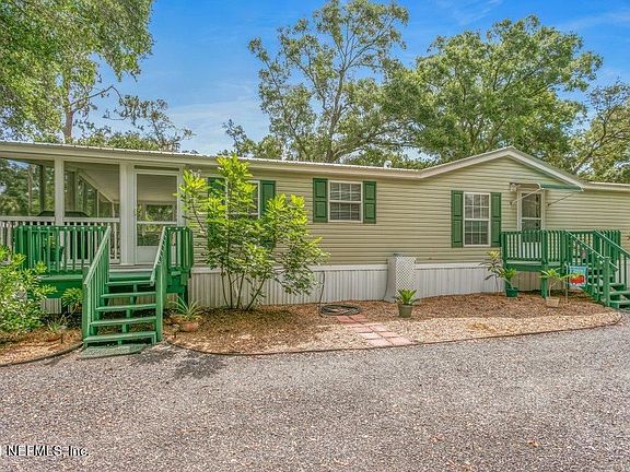 How would you like to live on an acre of land approximately 8 miles to the beach and 7 miles from the historic district? If you are hoping for a home that is move-in ready and affordable, you have found it. This home built in 2007 has been meticulously maintained and offers a spectacular kitchen with upgraded stainless steel appliances and white cabinetry with crown molding. The breakfast nook has sliding glass doors to enjoy the established azaleas, sago palms, and birds of paradise. The living area has tons of natural light and vaulted ceilings making it an inviting space for all who enter. There are two master suites, each having a walk-in closet and full bath. The larger of the two masters has a double vanity, soaking tub and walk-in shower.