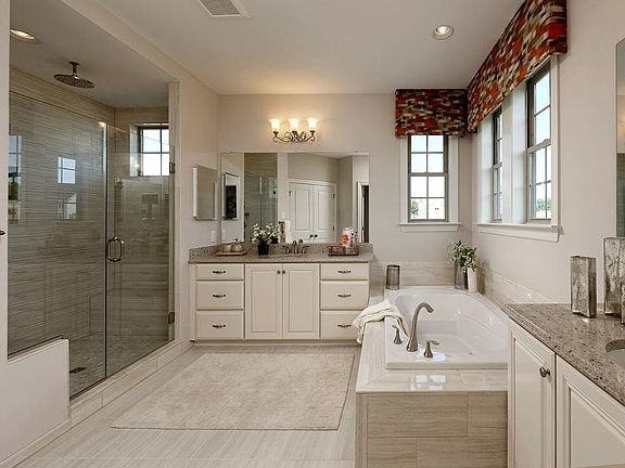 The covered front porch of this home warmly welcomes family and visitors.. To the left of the open two-story foyer is a dramatic and spacious living and dining area spanning 28 ft and featuring an optional coffered ceiling. Located just across from the open great room, the gourmet kitchen includes a cooking island with curved breakfast bar offering seating for four and walk-in pantry. An informal eating area adjoins the kitchen. A first floor owner's suite with lavish ensuite, private library and laundry room complete the main living level. Upstairs, an open loft with three additional bedrooms and two full baths may be modified to feature an in-home office, second level master suite with sitting room and tremendous amount of storage space with two huge walk-in closets and a deluxe bath. Complete the lower level of this home by finishing a recreation room with wet bar, media room, optional bedroom, another home office and fifth full bath. This home features a 3-car garage.