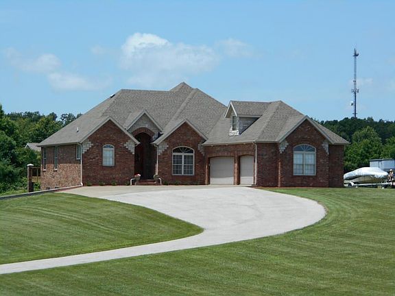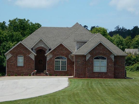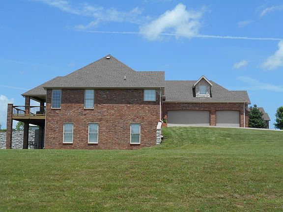 TOWN AND COUNTRY LIVING. Located in a prime location just 5 miles southeast from Hwy 65 and James River in northeast Ozark. This custom all brick walkout home sits on 3.59 rolling acres with nice views in Hidden Springs subdivision. Home has almost 4000 square feet with 4 bedrooms, 3 bathrooms, two living areas, office, kitchen/dining/hearth combo with fireplace, rec room and John Deere room (could be easily converted into 5 bedroom or other additional room). Features include highest grade granite in custom kitchen with real slate floor and backspash. Italian porcelain tile. Alderwood and oil bronze fixtures throughout. Large basement living area with buffet bar surrounded with stone wall and wood beams. Large deck that is half covered and half open for sun lounging.