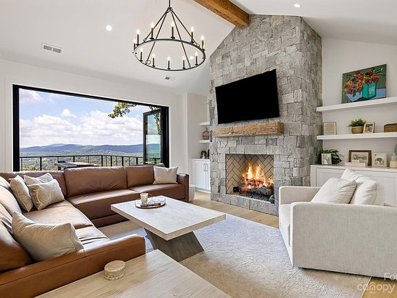 This remarkable 7BR, 5.5BA home on 6.41 acres blends modern farmhouse charm with stunning mountain living, ONLY 5 MINUTES to historic downtown Hendersonville. Revel in the breathtaking mountain views from every angle. Four inviting fireplaces grace this spacious home, creating a cozy ambiance.