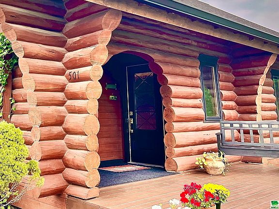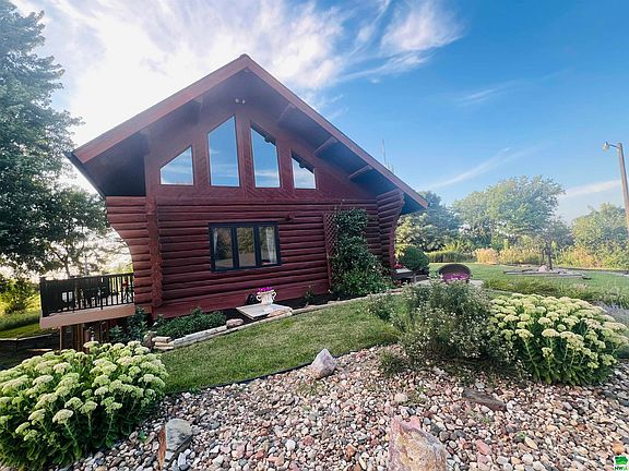 Let’s take a look at this 3 bed ( 2 more non conforming rooms on the lower walk out level) log cabin cedar home that sits on 1.12 acres right along the edge of town up top the hill as you exit Akron. Yes this is an acreage that is as close to town as you can get, in city limits. The scenic views are spectacular amidst the beautiful landscaping also. Property sits right next to over nine miles of hiking trails along the Big Sioux. This log cabin cedar home offers 3 beds ( 2 on the lower walk out level non conforming ) with 2.5 baths and main floor laundry. The master looks over the living room with a full bath upstairs as well. The lower level has a walk out basement that has a small kitchenette, a full bath and two nonconforming beds (no egress window in bedrooms) but access to the walk out basement area. You have a deck on the main as well as a great patio with shed area for all your landscaping needs. The property has a 2 car detached oversized garage as well for all your storage needs. Home was safe from the flood of 2024. This property is just a slice of heaven. Property was used as a bed and breakfast in history. Seller is selling the property AS-IS ( inspections for buyer knowledge only ). Seller reserves the right to accept any offer at anytime. This could be your next home!!!