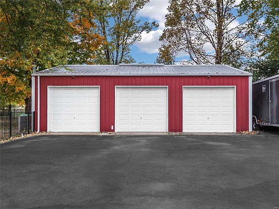 Full brick ranch positioned on a 3/4 ACRE lot with 4 car garage! Back yard is fenced and backs to tree line - providing privacy. Living room is spacious with laminate flooring. Large dining room for those who like to entertain. Kitchen was updated in 2014 and provides soft close cabinets, lots of counter space and stainless appliances. Three nicely sized bedrooms, primary bedroom with 1/2 bath. Basement is partially finished and includes a family room, game room (pool table can stay if you wish), bonus room, laundry room (washer/dryer stay) while leaving a large space for storage. Windows and patio door are Anderson replacement. Enjoy hot summer days in the above ground POOL. One car attached garage and a metal OUTBUILDING (30 x 38) with concrete floor, drywalled, lift (that stays) with 3 doors and bays - attached to the back is an addition that is 12 x 21 with a garage door. Passed Caseyville Occupancy.