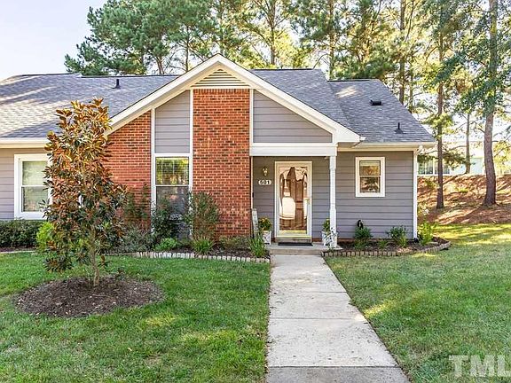 One Level Ranch Town Home in a fantastic "walkable" location! Walk to Morrisville Town Park with playground, picnic shelter & ball fields! Greenway and sidewalks to shopping & dining! Updated kitchen with granite tops and pass-through to live edge breakfast bar, open dining and family room area! Bright tile sun room with HVAC and storage rm. Modern stained concrete floors & plenty of crown moulding. Two large bedrooms with double door closets. Hall Linen and W/D Closet. Bath has new vanity.