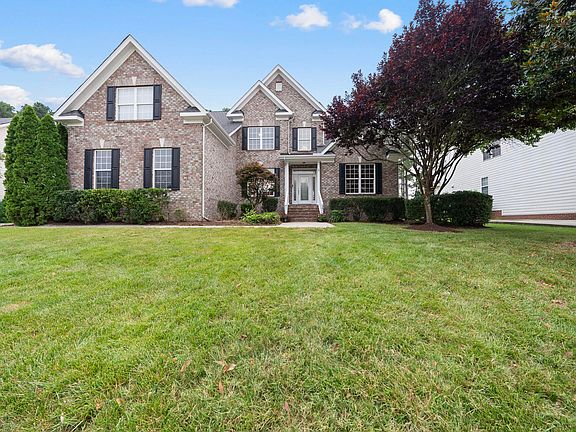 Welcome to this elegant and spacious Home in The Estates at Weldon Ridge, offering 4,286 sq. ft. of comfortable living space and an unbeatable West Cary location. Nestled on a private lot with a lovely brick front, this Home blends timeless charm with modern updates. Step into the impressive Two-Story Foyer, flanked by a dedicated Office and Formal Dining Room, and move effortlessly into the expansive Family Room with a cozy Fireplace. The updated Eat-in Kitchen features refinished Cabinets and opens to a Porch perfect for morning, coffee or evening relaxation while overlooking your peaceful backyard. The Main-Floor Primary Suite offers convenience and privacy, while the Second Floor boasts 3 additional Bedrooms, a versatile 5th Bedroom or Bonus room, and a Theater/Rec Room providing flexible living for families of all sizes. Additional highlights include Beautiful Hardwood Floors, Updated Cabinets in Kitchen and Baths, Interior Freshly Painted, New Carpeting, New Microwave, New Fixtures and Landscaping, Roof 2020 and newer HVAC. Located in one of West Cary's most desirable neighborhoods, enjoy Weldon Ridge's amenities, including a Pool, Volleyball, Playground, Walking Trails, American Tobacco Trail, Thomas Brooks Park and zoned for top-rated schools. Just minutes to RTP, RDU Airport, Shopping, major Highways.