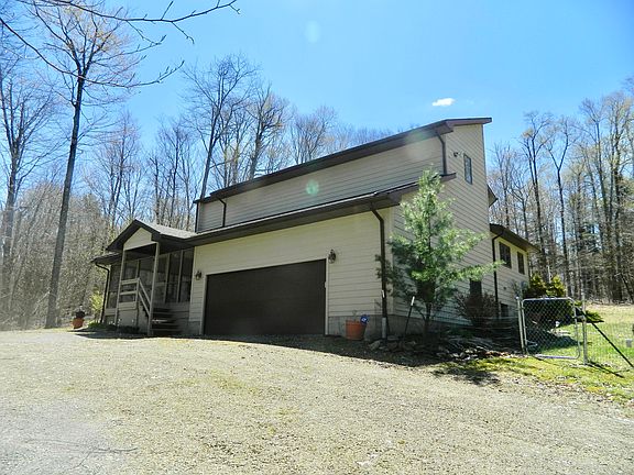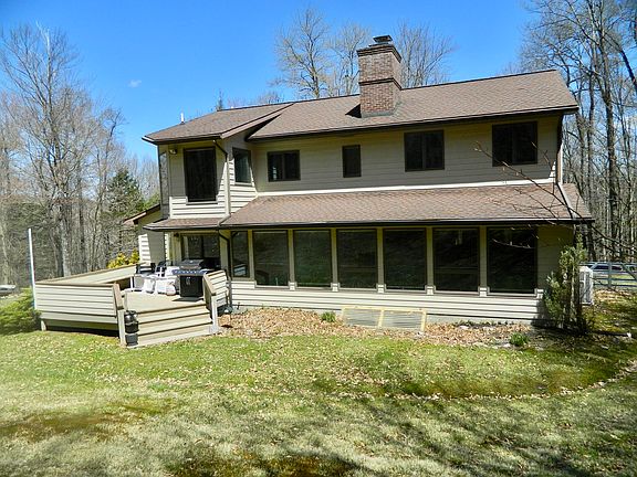Full-time or Vacation Home on 6+ acres at Lake Mokoma. Drive up the tree-lined driveway to this private home tucked in the woods, yet not far from the Lake and Conservancy Land with lots of hiking trails. Home features a wall of sunny windows on one side and screened-in porch on the other. Large living room with fireplace & insert, dining room with built-ins, and kitchen with island for cooking. Four BR and 2 BA on the upper level, 2 additional BA, and full basement and garage below--lots of room for storage, with the potential of more living space. A must-see at Lake Mokoma.