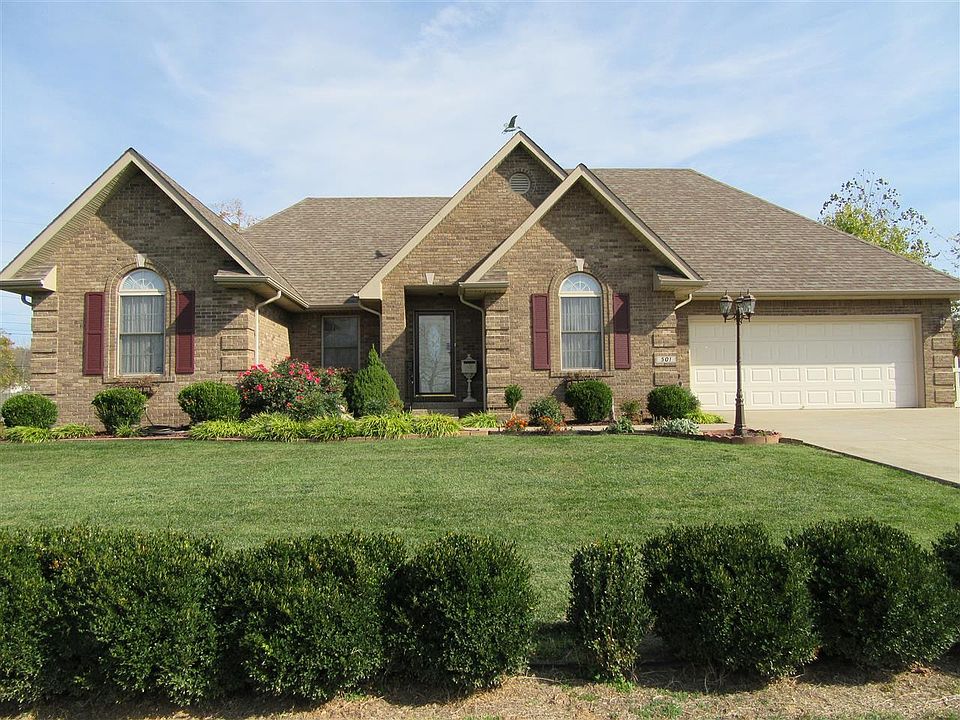 This ONE STORY WELL MAINTAINED home features an , OPEN FLOOR PLAN, a SPLIT BEDROOM design, beautiful landscaping, and a convenient location. Hardwood flooring is in the Foyer, Great Room, Dining Room and Eat-in Kitchen plus Tile floors in the Garage Entry Area, Full Bathrooms and Utility Room/Half Bath!! The Master suite features a walk-in closet, separate tub and 4 ft shower and double sinks. The Utility Room/Half Bath combo is convenient to the garage for an easy clean up!!! You will love the garage...it has a built-in natural gas heater, extra insulation, utility sink, and cabinets!!! The 12'x 20' storage building offers plenty of storage plus another added feature is a fenced area for pets!!! CONVENIENT.... approximately 1/2 mile to Ring Rd, 31W Bypass OR Burkhead Elementary PLUS 1 mile to Hardin Memorial Hospital!!!