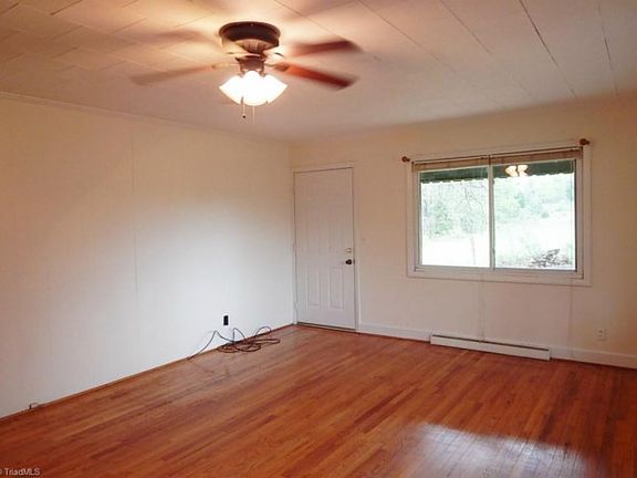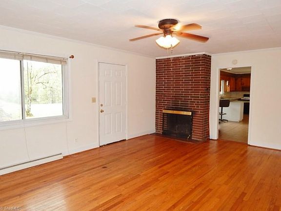 Seller will consider LEASE/PURCHASE...Brick ranch home on .91 acre in Stokesdale! Full unfinished walkout basement. 3 bedrooms/1.5 baths. Kitchen has lovely knotty pine cabinets and breakfast bar. Fireplaces in living room and breakfast area. Beautiful hardwoods and tile floors throughout. Freshly painted. Carport on one end and sweet covered porch on the other. Nice level yard with storage building. Convenient to Hwys 68 and 220. Eligible for USDA financing.