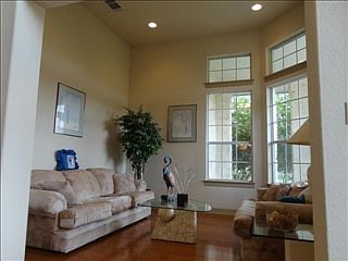 This is a beautiful home which is basically a one story home with ALL rooms down with only the Media room up. Very High Ceilings, Double Ovens, Island, Granite, Microwave, Very Large Secondary Bedrooms, Office, Formal Dining, Rotunda, Game Room, Media Room. Master Bath has Roman design Jetted tub, Multi Head Shower/Sauna, Certified Butterfly Garden, Over Two Wooded Acres, Backs to Greenbelt/Nature Trail.