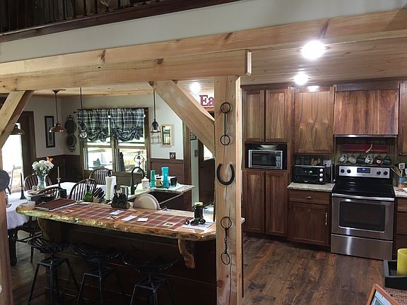 Fabulous 2014 Custom Lake Home with a Gentle Walk to Year Round Deep Water and Expansive Views! This home boasts soaring gambrel ceilings, tavern style wood floors, walnut kitchen cabinetry, stainless appliances, and copper farm sink. Nice size master bedroom on the main level, double vanity sink and 6' tiled shower in the master ba. Terrace level has 2 master suites and an awesome great room w/wet bar. In the large loft there is a private sleeping area which closes off with barn doors. Upstairs to the 22'x30' garage is a finished game room/extra sleeping area with a 1/2 bath. Wonderful 10'x56' covered back deck, fenced yard, and covered dock with swim deck. Duel fuel Hvac. Located in the sought after area of Notla Landing! Some furniture may be available to purchase. Possible owner financing available.