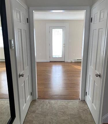Welcome home to this beautiful townhouse Bright & freshly painted waiting & ready to move right in. Three levels of wonderful, easy living space with three bedrooms and one and a half baths. Enjoy a remodeled eat-in kitchen with plenty of counter space and cabinetry with stainless steel appliances. A laundry and storage area with the 1/2 bath is conveniently located right off the main entry with another large coat closet in the front hall. The combined living room and dining room spans across the entire length of the first floor with beautiful hardwood flooring and a door leading to a deck and small yard area with some privacy fencing & landscaping. A turned staircase leads to the upper level with three bedrooms - all with hardwood flooring and large closets and the full bathroom with large linen closet. The lower level is unfinished allowing for plenty of added storage and versatility for use. This townhome is conveniently located to shopping, transportation, restaurants, highways and more.