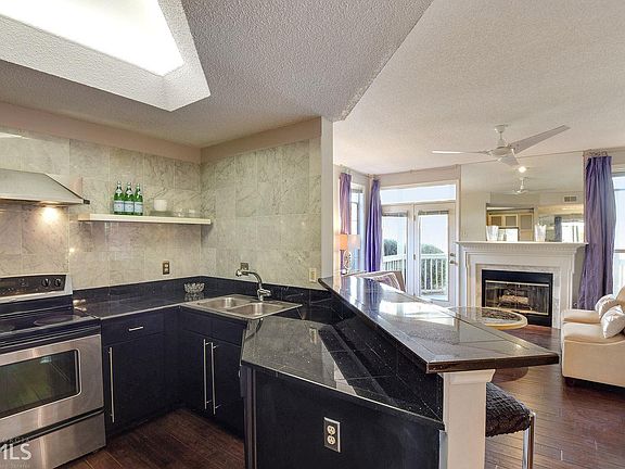 Bold city views from every room in sizzling Old Fourth Ward. 1000 feet from i85/i75 connections, only a short stroll to O4W park, the Beltline, Ponce City Market, Inman Park Village + Downtown. Open Floorplan, wide-plank hardwoods, designer gray paint, renovated kitchen w. floating shelves + stainless appliances w. view of the fireside living room. Renovated bathroom with granite, stone bowl sink + private jetted tub. Gated community w. pool/clubhouse + plenty of parking. Strong HOA w. no pending assessments and Google Fiber already installed! 1 yr. Home Warranty incl.