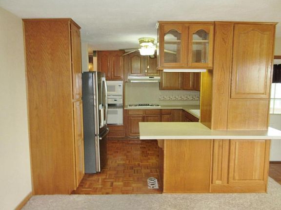 3 bedroom, 2 bath home on almost an acre. Hardwoods in the kitchen, foyer and hall. Newer kitchen cabinets and solid surface counters, windows, siding and laterals. Basement features a pellet stove, wet bar and room for a pool table. 31x59 workshop with insulated walls and ceiling with 13.5' side walls and 12 ft and 10 ft doors. It is ideal for lifting a vehicle to work on and 220 is available. Would sell existing lift for $1000.