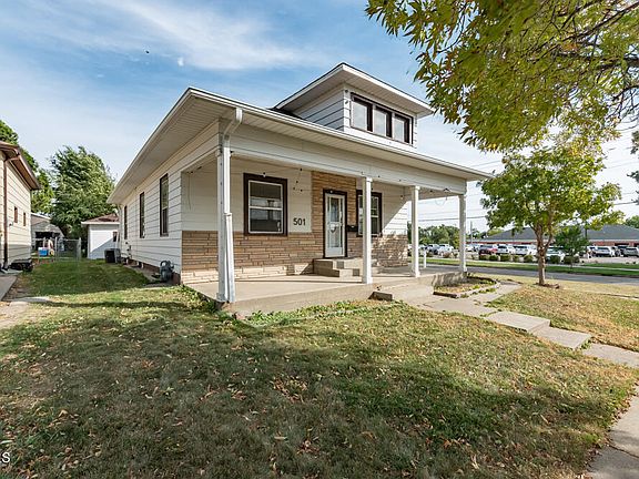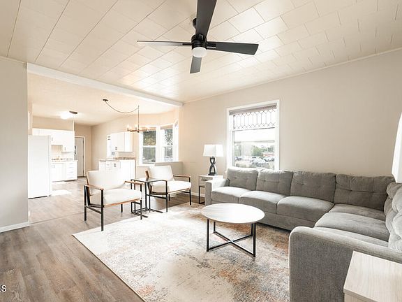 This property is in a prime location, making it ideal as a HOME or an INVESTMENT opportunity! Completely renovated with an open-concept design, it sits on a corner lot near the hospital and downtown, featuring a double detached garage with newer doors. The main floor has THREE bedrooms, while the basement offers ONE bedroom, a cozy family area, and laundry space. The kitchen has been updated with new cabinets, new countertops, backsplash, refrigerator, range, microwave, and a relatively new dishwasher. The home has new flooring on the main level, includes FORCED AIR FURNACE & A/C, new carpet in the basement, new ceiling & plumbing was also put into the basement, and updated window treatments on the main. The furnace and water heater are about 5 ½ years old, and the roof on both the house and garage has been recently replaced within the last two years. INCLUDES A TWO STALL DETACHED GARAGE with a newer driveway that was poured within 5 years and the waterline from the house to the street was updated. Schedule a viewing—you won't be disappointed! FURNITURE INCLUDED!