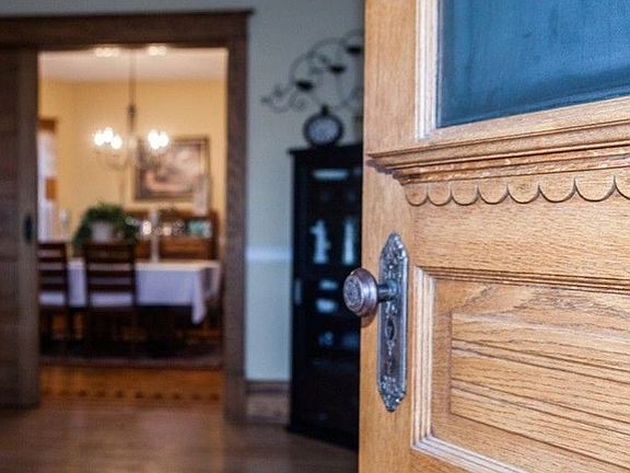 A great home on a double lot, fenced in yard with a garden and patio area. The original carriage barn on the property contains a loft space and a workshop. This home features exquisite details, as well as modern touches throughout. The parlor, formal dining room and office boast original wood craftmanship and pocket doors. The addition of the home has a spacious open floor plan with a family room and casual dining room, flowing into the kitchen. Storage in this home is abundant. It is just a short walk or drive from downtown Greene, Perrin Park and Shell Rock River access. The front porch overlooks the growing community gardens. Let us know if you'd like to check it out for yourself!