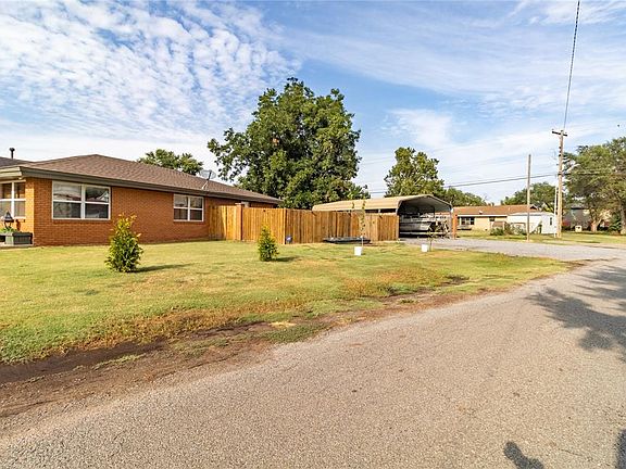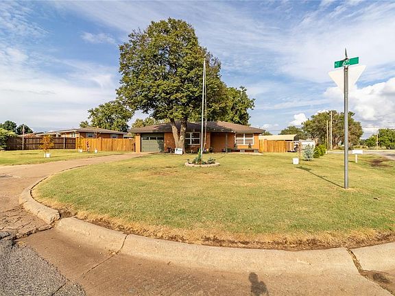 Adorable home with unique character. Beautiful exterior and large corner lot. Neutral color scheme with tile & laminate wood floors throughout! Primary bedroom is very spacious and located at the back of the home. Primary suite includes large walk in closet and bathroom with a shower. One car garage and unfinished basement for a storm shelter. Improvements include fresh paint, new tankless hot water heater, outdoor kitchen, covered porch on the back patio, 30x40 Eagle carport with 8” gravel, generator plug for portable generator. Huge backyard and carport so large you can store a boat and still have room for a vehicle! Roof 2021. Recent landscaping. Must see to appreciate.