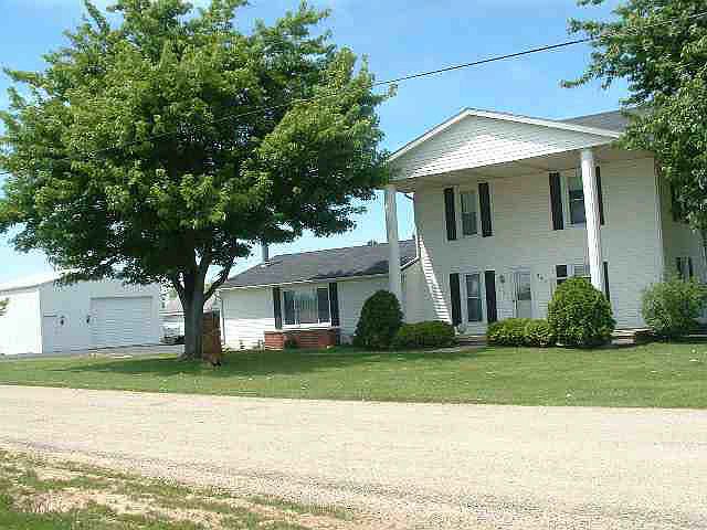 10 acres - 30x30 pole barn - Wapahani Schools!! This 4 BR, 2 bath home has had many updates including newer kitchen with oak cabinets. LR & FR. FR w/economical pellet stove. Enjoy the country from the front porch of this 2 story colonial home with many amenities. Handy to SR 32 and Muncie By-pass. Spacious rooms include LR (presently used as game room) + FR. The large kitchen offers Pergo flooring & custom oak cabinets. DW but range & refrig. are both nego. Nice laundry room with cabinets (utility sink not hooked up). Three large BRS (includes loft) and 5 pc. bath with double vanity on 2nd level. Top this off with a 1 car att. garage, pole barn with concrete floor (heated but need to hook-up propane gas - not presently used). Also includes a 18x32 inground pool that needs work - a $4,000 allowance is included in price for pool liner and opening. Pool area has a privacy fence. Access to crawl space outside on the north. Well is in pump house at back of home.