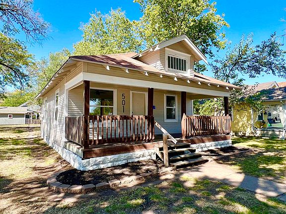 LOCATION! LOCATION! LOCATION! Welcome home to this charming 2 bed, 1 bath gem nestled in the highly sought-after Delano neighborhood. This freshly updated bungalow boasts a host of amenities, including new paint both inside and out, fresh flooring throughout, and contemporary light fixtures to brighten your living space. The kitchen is a chef's dream, featuring new granite counters, a stylish custom backsplash, and a convenient coffee bar area with open butcher block shelving. Additional kitchen upgrades include a new sink, faucet, stainless over-the-range microwave, and updated cabinets with new handles. The bathroom has been tastefully updated with a new commode, vanity, mirror, and vanity light. Enjoy the convenience of a mudroom/laundry room off the back entrance and a new water heater. Outdoors, a spacious covered front porch invites you to relax, while the sizable, fenced yard offers plenty of room for outdoor activities. Located within walking and biking distance to a plethora of attractions, including the Arkansas River, Riverside Park, Exploration Place, Keeper of the Plains, Advanced Learning Library, Riverfront Stadium, Century II, Botanica, local museums, and more, this home perfectly combines comfort and convenience in the heart of Wichita. *New gutters to be installed by Byer Seamless Gutters prior to closing.*