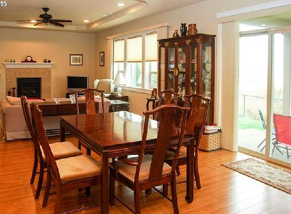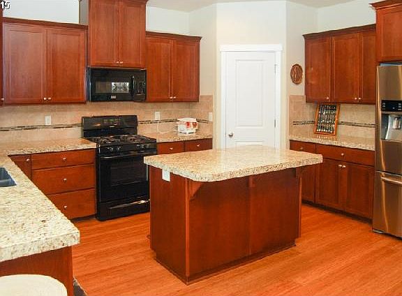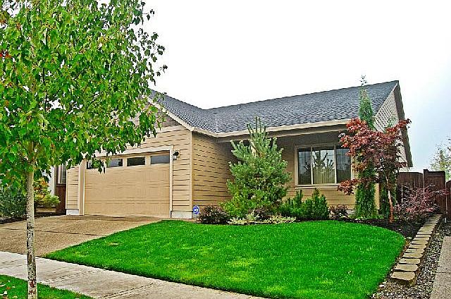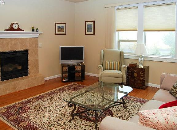 Upscale home on greenbelt in this well-cared for one-level home. Bamboo hardwood floors and 9ceilings w/fans throughout a comfortable floor plan. Great room w/a gas Travertine fireplace, Hunter Douglas blinds, ceiling fan and tray ceiling. Kitchen has granite counters and island; pantry. Master bedroom suite w/walk-in closet and designer tile in shower and double sinks. Back yard fenced, covered patio; sprinklers. Compare to new construction.