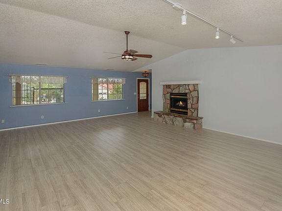 Fabulous/Affordable 1617 Square Foot Ranch Style in Desirable Prescott Country Club on .27 Acre Corner Lot, with Incredible VIEWS from large Covered Front Patio & Backs Open Range Land!!! Home has 2 Bedrooms, 3 Bathrooms, 2 Car Garage, plus 12x20 Detached Man Cave/Workshop. Home has Vaulted Ceilings, GREAT ROOM Concept, New Wood Laminate Floors, 2 Tone Paint, Electric Fireplace with Stone Chimney Face, Ceiling Fans, Skylights, & Oak Sill Plates. Kitchen has White painted Oak Cabinetry, Laminate Countertops, Mirror Back Splash, Stainless Steel Appliances, Pantry, & Breakfast Bar. Master is spacious with ¾ Bath having Single Sink & Walk-In Shower, plus Large Walk-In Closet. Additional features include S-Tile Roof, Fenced Backyard, Large Laundry with ¾ Bath, & has Apple & Peach Tres!!!