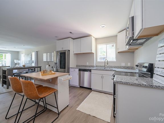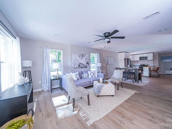 This charming home boasts an open floorplan that was brought up to modern day standards. Featuring a brand new 30 year architectural shingle roof, new HVAC, appliances, wiring and plumbing & windows. Addition of primary suite makes this large bedroom dreamy with walk in closet and dual vanity, tub and separate beautifully tiled oversized shower behind barn door. The open living area to the kitchen and dining make this the perfect home to show off to guests or cozying up with the family. Outside you'll find peacefulness as you sit on your covered front porch gazing at the City View while enjoying the pleasant Carolina weather. You'll find plenty of opportunities for outdoor activities, from gardening & hosting barbecues to playing games with loved ones. Conveniently located near 85 & 77 access. This home truly offers the perfect blend of peaceful living & urban convenience.