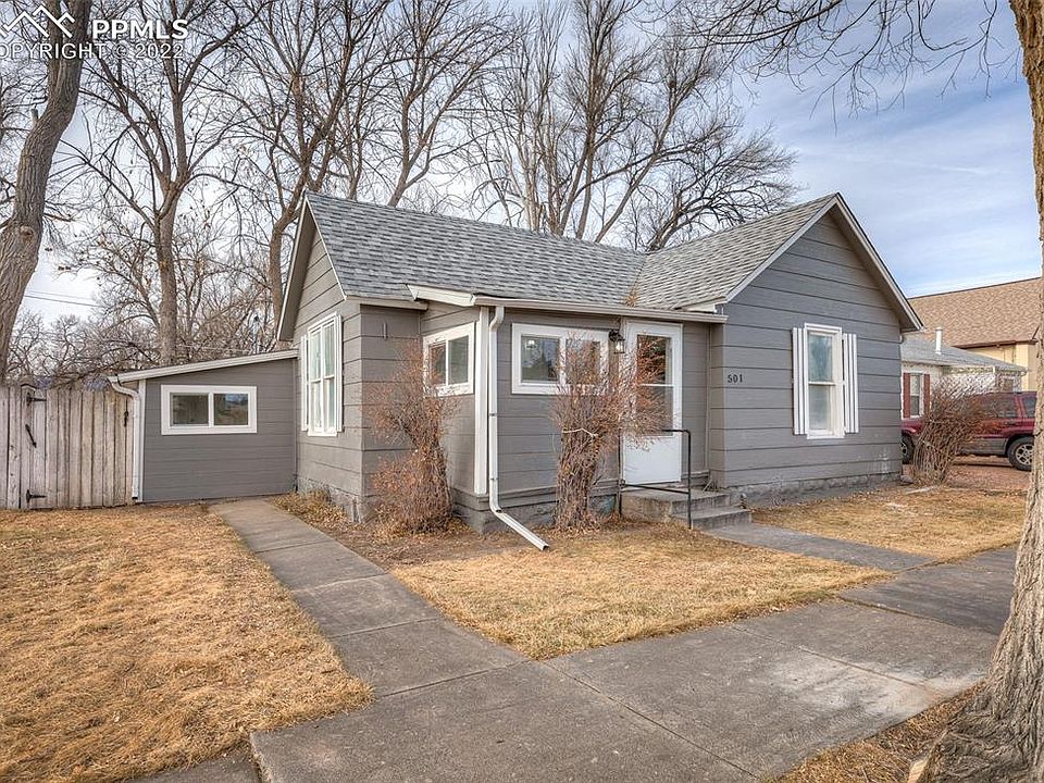 Check out this charming, updated "Turn of the Century" Cottage on a large oversized lot, across from the neighborhood park, within walking distance to library, splash park, schools and shopping. This home features 2 bedrooms, the primary bedroom features a walk-in closet plus an adjacent sitting room/office with walk-out to backyard patio, one full bathroom, eat-in kitchen, laundry room off kitchen with walk-out to backyard, brand new mini-split units for cooling and heating, new windows are on order and will be installed by the owners, a large fenced-in yard with plenty of room for RV parking, sewer clean out, plus storage/workshop and carport !