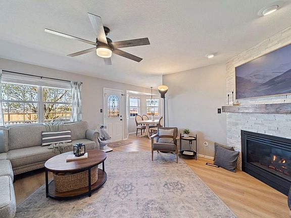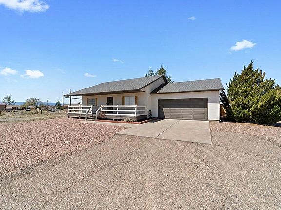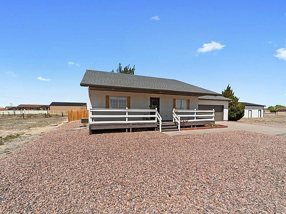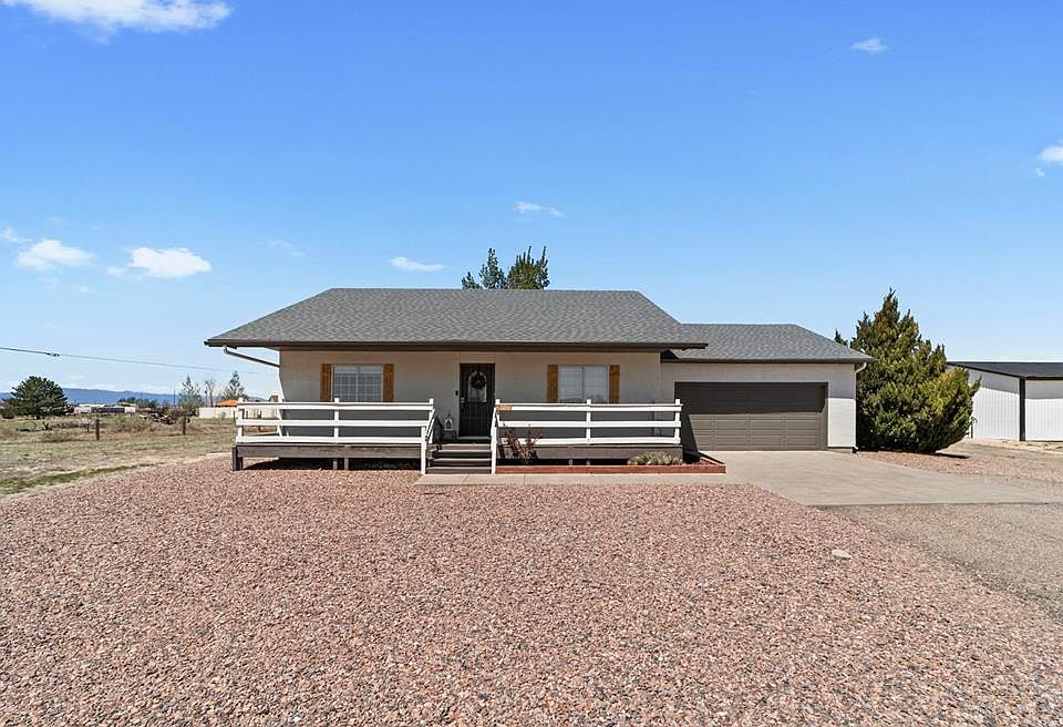This charming ranch-style home is situated on 2.57 acres on the Northside of Pueblo West. The home offers 5 bedrooms and 2 bathrooms, along with a 2-car attached garage. Inside, you'll find luxury vinyl tile throughout the main level. The open living and dining areas create a fantastic space for entertaining, complete with a cozy gas fireplace. The kitchen is equipped with stainless steel appliances, including a gas stove, and boasts an abundance of cabinet space. Don't miss the incredible pantry—perfect for all your storage needs. The mud/laundry room features LVT flooring, ample storage, and a dedicated mudroom area. The large master suite offers a peaceful retreat, complete with a five-piece master bathroom and a relaxing jetted tub. The downstairs has been partially finished, with a spacious family room, a third bedroom, and two non-conforming rooms that could serve as additional bedrooms or flexible spaces like a home office or gym. Storage is abundant throughout the home, and modern comforts such as central air and a radon mitigation system add to its appeal. The fully fenced backyard features a large covered deck, offering a perfect space to relax and enjoy stunning mountain views. Also features a large outbuilding for additional storage or projects.