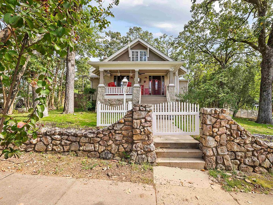 This truly special craftsman home in Hillcrest, listed on the Historic Registry, blends timeless architecture with modern updates. Main level was remodeled in 2024 with a custom kitchen, backsplash, matching dining cabinetry and all new appliances. 2 bedrooms sit on main floor, while the spacious downstairs primary suite offers a massive walk-in closet, sitting area, office and walk-out to the backyard & parking. Downstairs' reno in 2018 included 2 sump pumps, a tankless water heater, and updates to add comfort and efficiency. Attic is floored, partially finished, and heated/cooled—for storage or future expansion. Guest cottage has new flooring and AC. The corner lot and a half features towering oaks, crepe myrtles, and a charming rock wall. Fully fenced backyard includes a storage shed and private access to the guest cottage and driveway that provides drive-through parking from the alley to Lee Street. From here, you’re just 2 blocks from Kroger and 3 blocks from Kavanaugh’s shops, restaurants and cafés. It's not just a home, it's a lifestyle! Attic and cottage sq ft not included in listed sq ft. Paint concession available w/good offer. See docs for full list of updates.