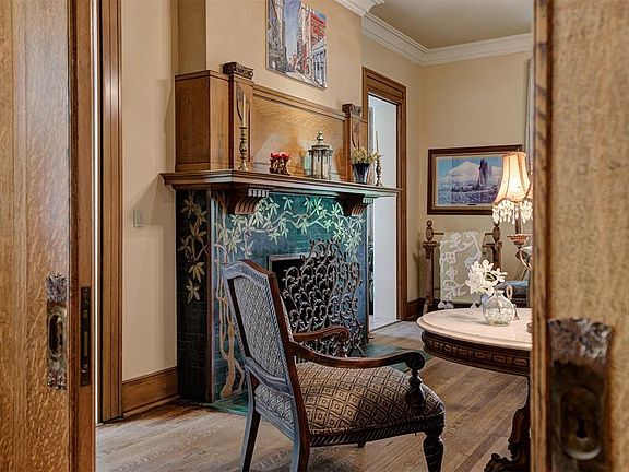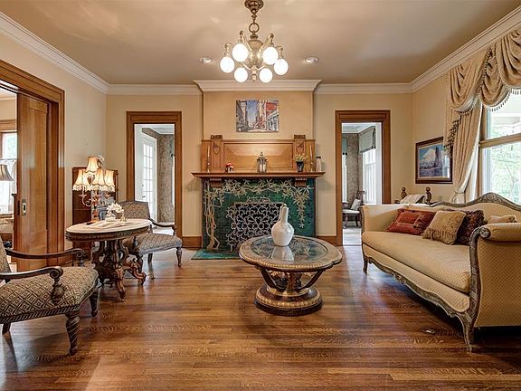 Stepping inside, prepare to be enchanted by the meticulous restoration of woodwork and light fixtures, accentuated by the timeless elegance of stained glass windows and limestone trim. The interior is adorned with hardwood floors that lend an air of warmth and sophistication to every corner.