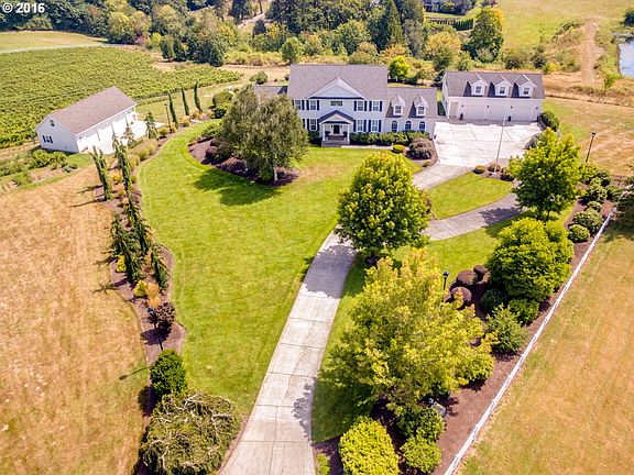 Stunning 5 acre property with vineyard in Rolling Hills! Gorgeous open concept floorplan, gourmet kitchen, tall ceilings and hardwood floors. Two fireplaces and a huge master suite. This home features 5 bedrooms, a den, office and separate living quarters with kitchenette, full bathroom and bedrooms with separate access and a patio. Parking for 8+ cars and a vineyard with outbuildings ready for your own wine business. Amazing views!