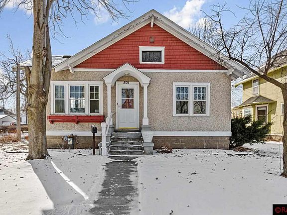 Welcome to 501 Nicollet Avenue located in Lower North Mankato. This charming 4 bedroom 2 bathroom home has all of the great charm of the past with plenty of new modern upgrades. Upgrades include, quartz countertops, custom kitchen cabinets, newer appliances and a partially finished basement. The main level consists of 2 bedrooms an open concept kitchen/dinning/living room and a full bath. Hardwood floors run through out the main level. The upper level you will find another bedroom or office space with a huge attic that could be turned into almost anything you could imagine. The lower level has been finished off to include a 4th bedroom, laundry room, 3/4 bath and plenty of storage space. Outside you will find a "newer" 2 stall garage (2002) a screened in "she shed" and anotherl 1 stall garage that is perfect for storage. This property does have a current rental license for 2 unrelated tenants.