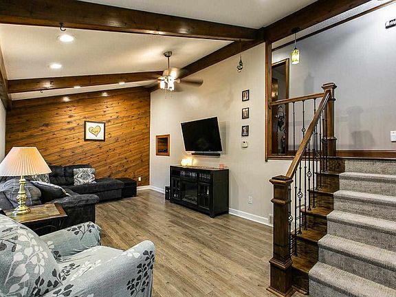Everything you want in all the right places! Located in Cedar Lake is this tri-level home with a beautiful fenced yard. Three bedrooms and two full bathrooms. Main floor kitchen, limestone wood burning fireplace, new flooring, large deck. Enjoy the pool, trails and tennis court amenities of Cedar Lake for the $50/mo HOA.