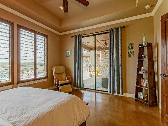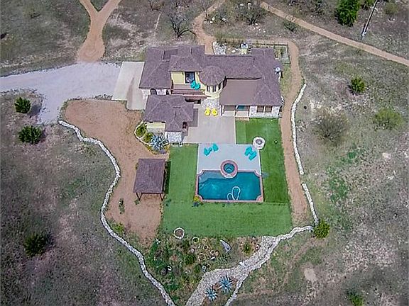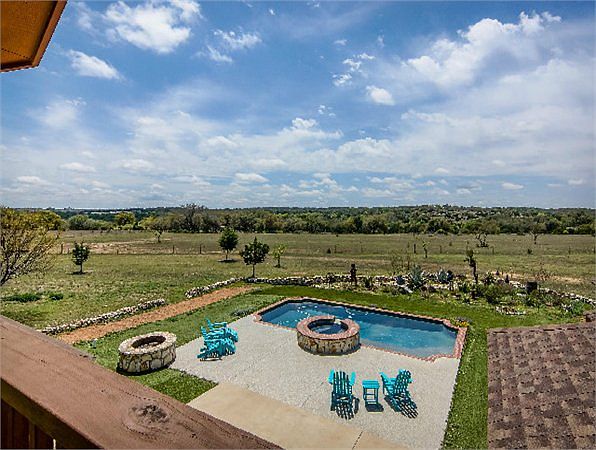 Welcome to Fossil Creek Ranch this gated ranch is a peaceful slice of Hill Country with custom home and pool looking out to expansive country views. Take a stroll through a grove of oaks, or to private wet weather creek that resides on the property. For horse lovers, there is a 100x200 lighted riding arena, 2-stall horse barn, and hay barn. The land is completely fenced and cross-fenced, with large, mature oaks, elm, and mesquite. All the cedar has been cleared from the land. Light restrictions in place to preserve the surrounding area, including no subdividing or trailer homes.The custom home was designed by Ed Wohlrab, and features an open floor plan, with master opening to covered patio with heated pool & hot tub. The exterior is designed for outdoor entertaining, with firepit, outdoor kitchen area, and pool cabana. Living area with vaulted ceilings and stone fireplace, with living open to kitchen with breakfast bar, granite counters and stainless appliances. The master suite features a walk-in shower and adjacent exercise room or nursery. A separate guest casita is perfect for visitors or in-laws. A detached workshop with garage has plenty of room for ranching equipment or ATVs.This Hill Country estate is ideal for single-family ranch residence, artists retreat, equestrian ranch, or someone wanting to have a weekend getaway residence. Only 1 hour from Austin and 30 minutes from Cedar Park, with the route being primarily a straight shot down Hwy 183.